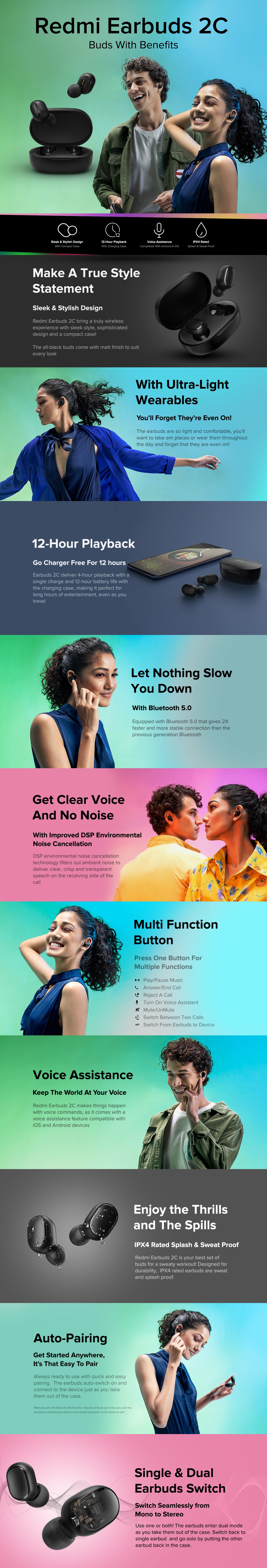 * This Redmi 2C True Wireless Earbuds image is for illustration purpose only. Actual image may vary.