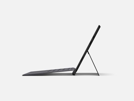 Work your way anywhere. Surface Pro 7 Signature Type Cover is uniquely designed to adjust to virtually any angle. Simply click into place and use three different ways: with Surface Pro 7* Kickstand open as a laptop; folded back for a tablet; and closed to shield the display and conserve battery life.