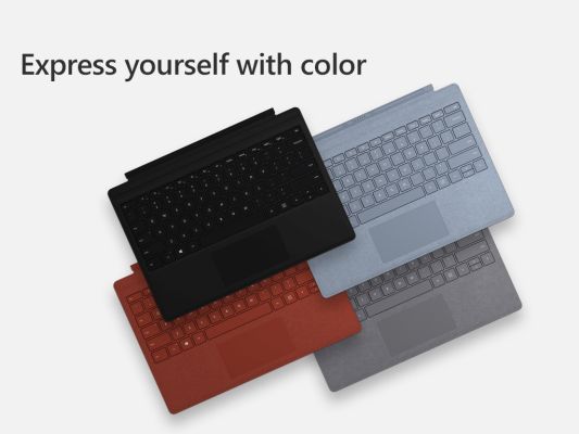 Surface Pro 7 Signature Type Cover not only provides a comfortable keyboard and typing experience, it also reflects your personal style. Choose from rich colors[1]—Platinum, Ice Blue, or Poppy Red in Alcantara®, and Black.[2] Mix and match with Surface Pen* and Surface Arc Mouse.*