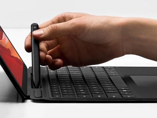 - Always ready at your fingertips. All-new Surface Slim Pen features a thin, light profile. It stores securely and recharges in the built-in storage tray of Surface Pro X Signature Keyboard.