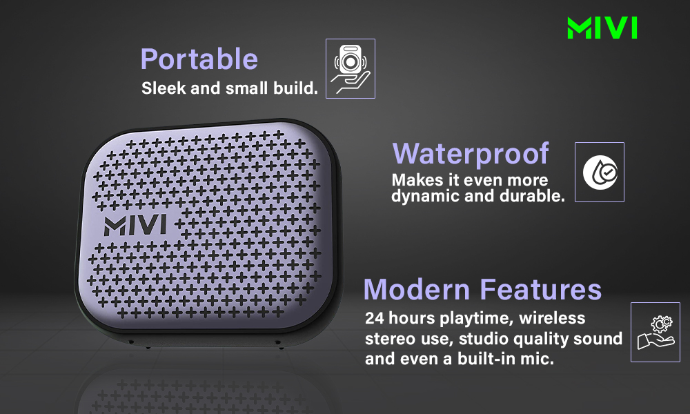 - 24 hours play time the only portable 5w speaker which gives you not 4 or 5 but a whopping 24hrs playtime at 70 percent volume. Now, there is nothing else that can top that
