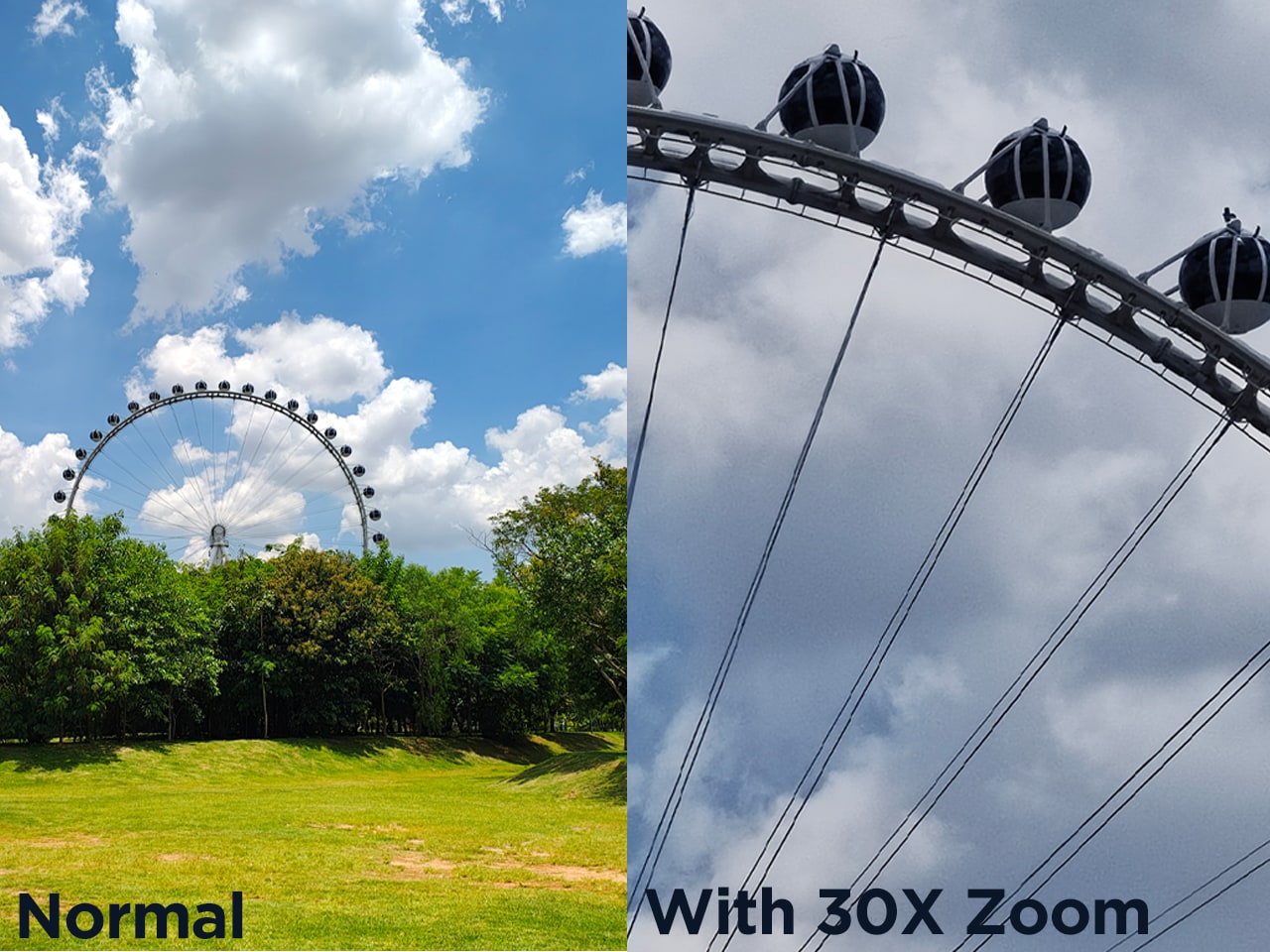 30X Hybrid Zoom From 3X Telephoto Camera Lens