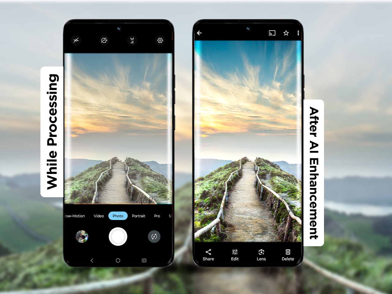 Enhance your image quality and shoot like a pro with AI-Enhanced Image Processing. AI improves the dynamic range and enables both software-based bokeh and advanced noise reduction especially in low-lighting conditions. All this processing happens on uncompressed RAW image data as it simultaneously applies settings from multiple shooting modes into one to deliver peak quality and finer details. You can really notice the difference when you zoom in. Enhance your image quality and shoot like a pro with AI-Enhanced Image Processing. AI improves the dynamic range and enables both software-based bokeh and advanced noise reduction especially in low-lighting conditions. All this processing happens on uncompressed RAW image data as it simultaneously applies settings from multiple shooting modes into one to deliver peak quality and finer details. You can really notice the difference when you zoom in.