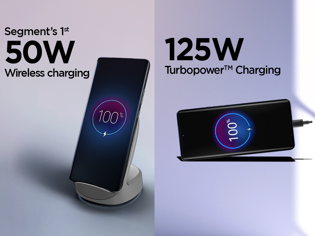 Power-up possibilities with 125W, the fastest TurboPower charging ever. And the blazing fast TurboPower 50W wireless charging lets you refuel your phone without the hassle of any cords and cables. Wait, there’s more, you can even help out a friend in need and give them a little battery life with the 10W wireless reverse charging.