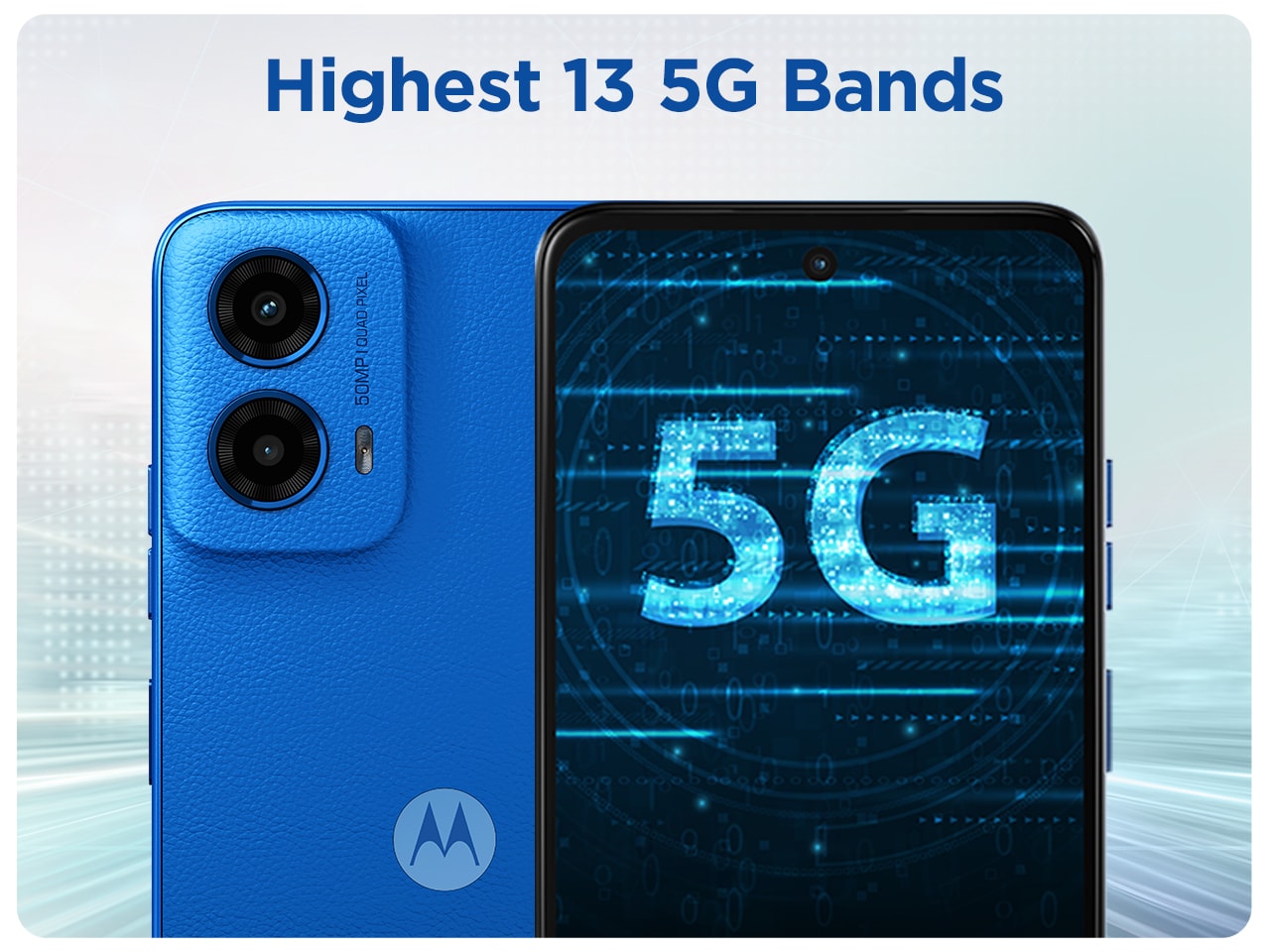 Experience blazing-fast 5G with the moto g45 5G. Enjoy the segment-leading 13 5G Bands with VoNR support, 4 Carrier Aggregation, and 4x4 MIMO for lightning-fast downloads. Stream 4K movies, download entire seasons in seconds, and video chat without lag—experience unbeatable speed all around.