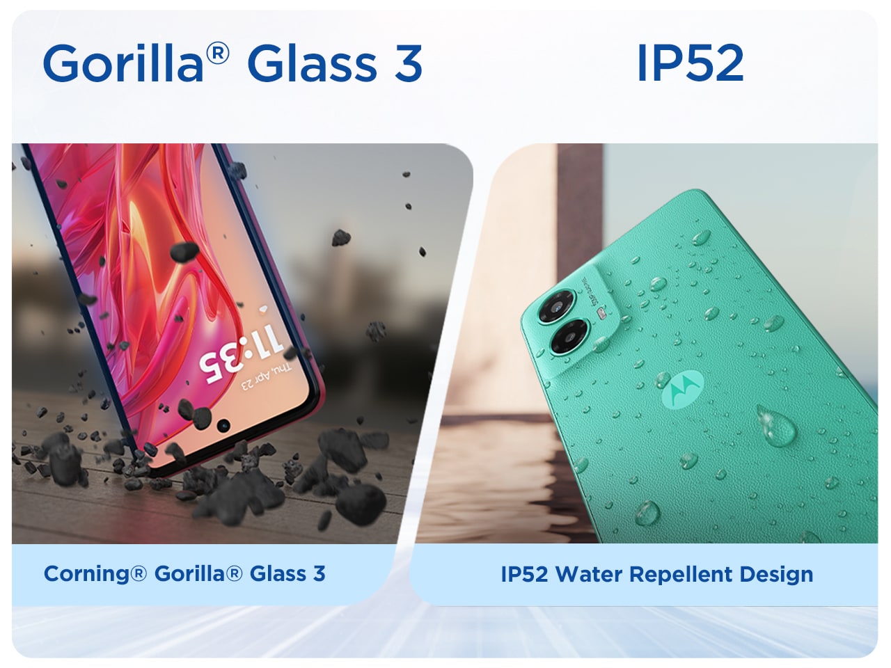 IP52 Water-repellent design + Gorilla Glass 3