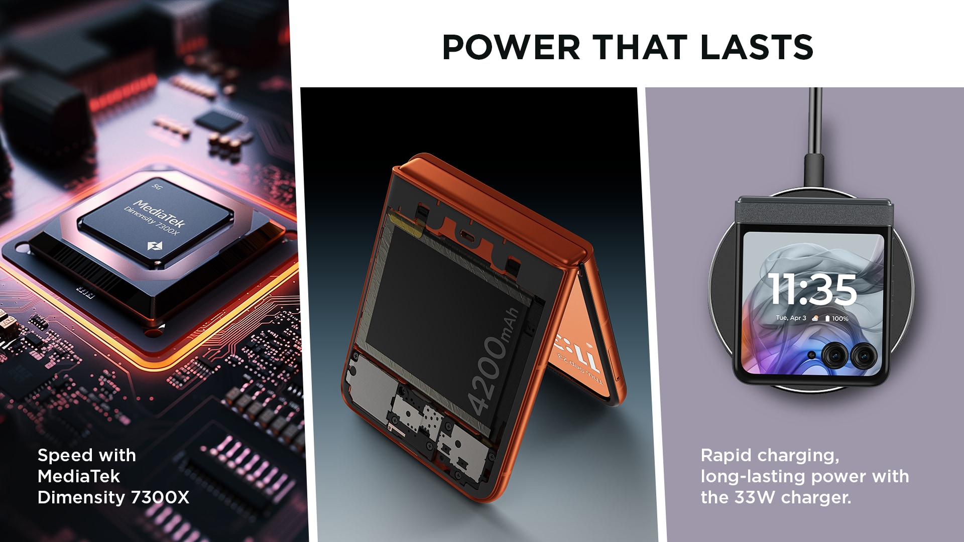 - Battery: 4200 mAh, 33 Watts TurboPower Charging