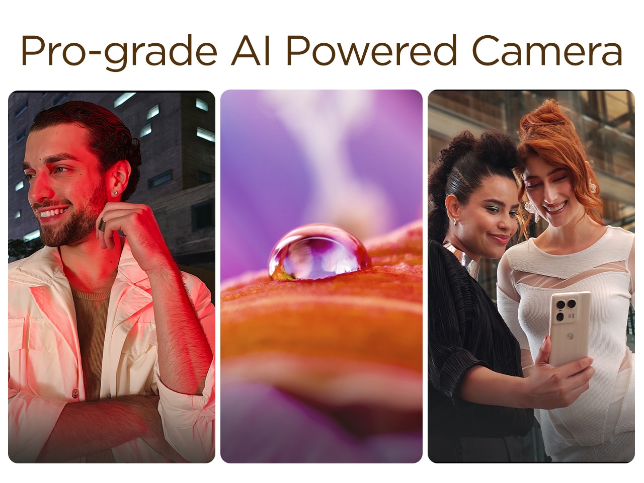 The Motorola Edge 50 Ultra isn't just a phone, it's an ergonomic symphony. From the moment you grip its flawlessly symmetrical curves, a sense of harmony flows through every element. It is the World's 1st FSC-certified real wood finish phone in the segment with precision cut aluminium frame. The endless edge display, virtually bezel-free, curves seamlessly into the palm of your hand, a perfect marriage of form and function. It’s also available in the 2024 Pantone Color of the Year, Peach Fuzz and Forest Grey color in Silicone Vegan Leather finish.