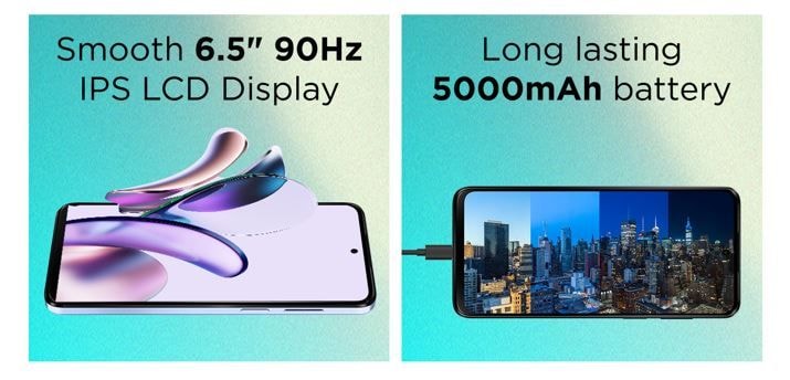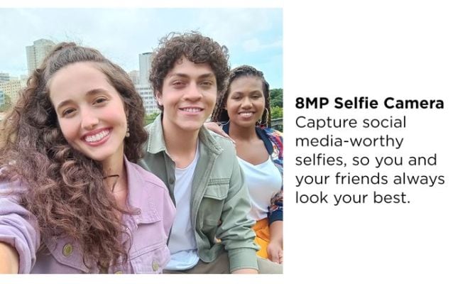 | Key Features | 16.51 cm (6.5 inch) HD + Display 4 GB Memory, 128 GB Storage 50 MP + 2 MP + 2 MP Rear Camera 8 MP Selfie Camera 5000 mAh Battery Android 13 Operating System MediaTek Helio G85 processor |