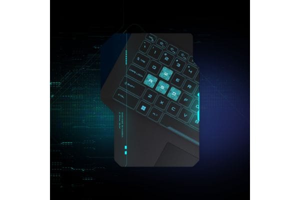 Highlighted neon WASD keys for faster and accurate in-game movements, with Sci-Fi accent space key, arrow keys and power button for added cyberpunk-style touch.