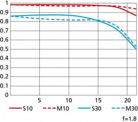Peripheral illumination does not fall off drastically by receiving a sufficient light amount throughout the entire frame from the center, through middle areas, to the peripheral areas. Bright peripheral illumination can be retained even at the maximum aperture. This also contributes to creating soft and natural bokeh characteristics.