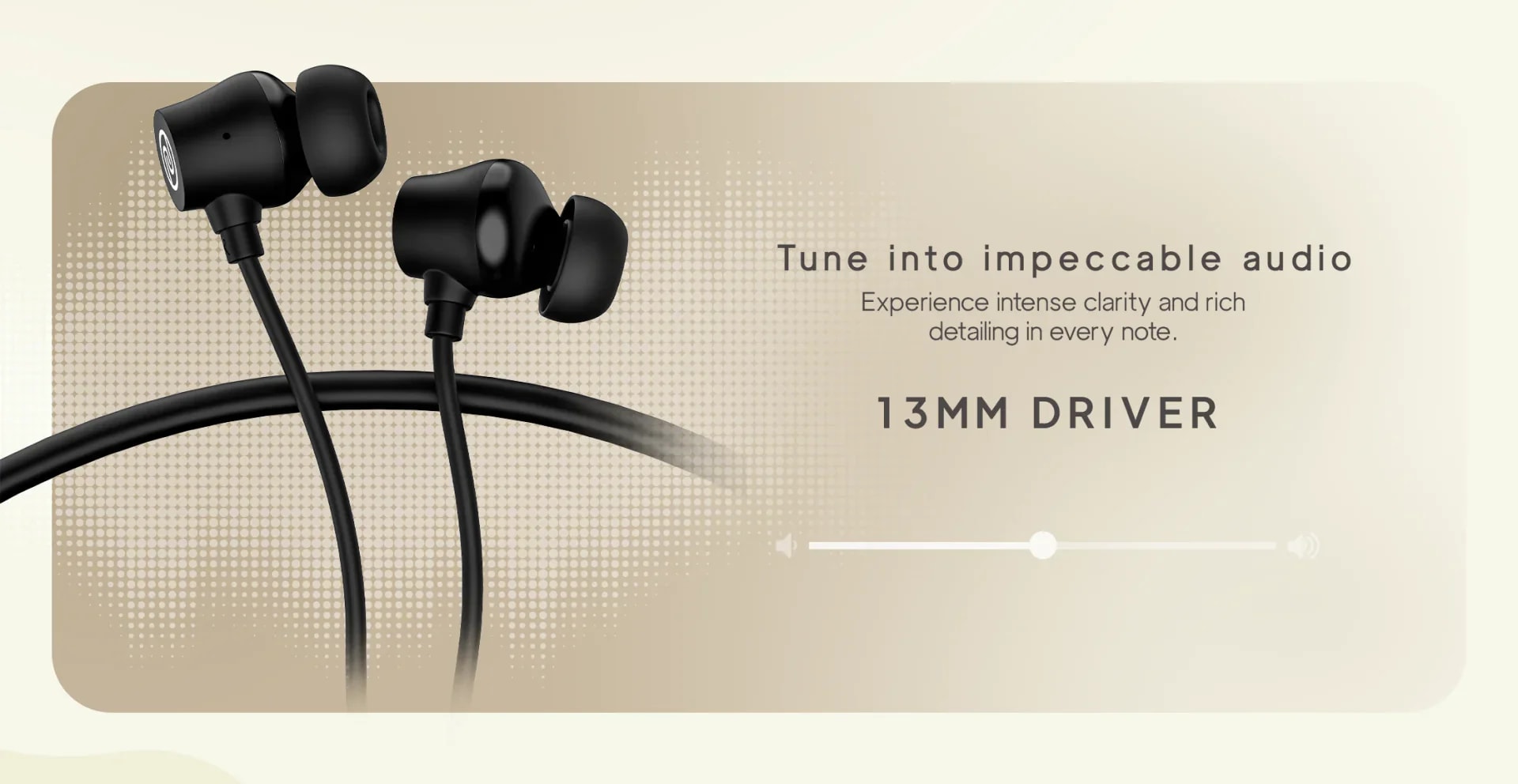 | Key Features | Up to 60 Hour Playtime 3 EQ Modes 13 mm Driver ENC for Superior Calling Low Latency (up to 40 ms) Sporty Elegant Design ANC (Up to 32 db) IPX5 Water Resistance Dual Pairing Bluetooth v5.3 |