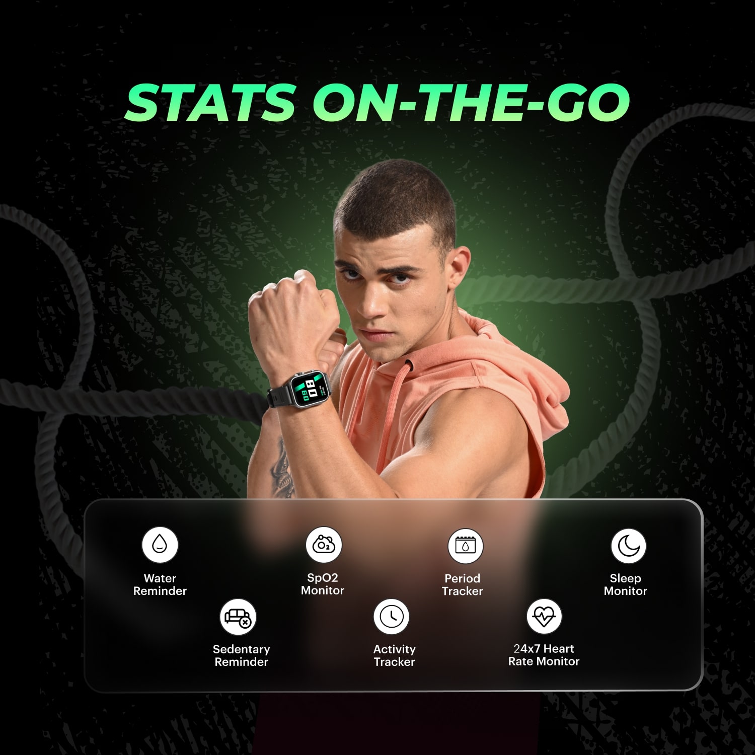 | Key Features | 4.94 cm (1.96 inch) IPS Display Heart Rate, SpO2 Accelerom Sensor Upto 7 days battery IP67 Water Resistance Bluetooth Calling In-Built Game |