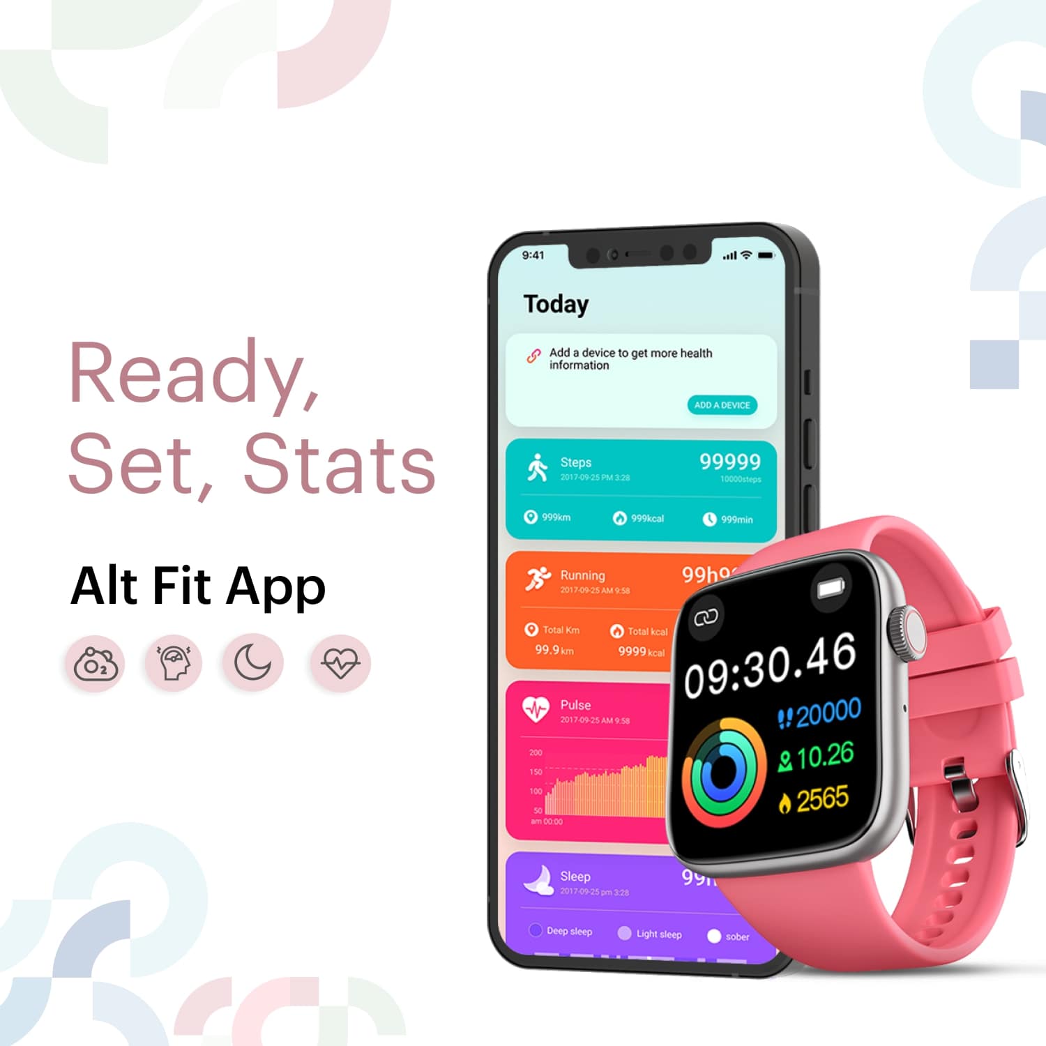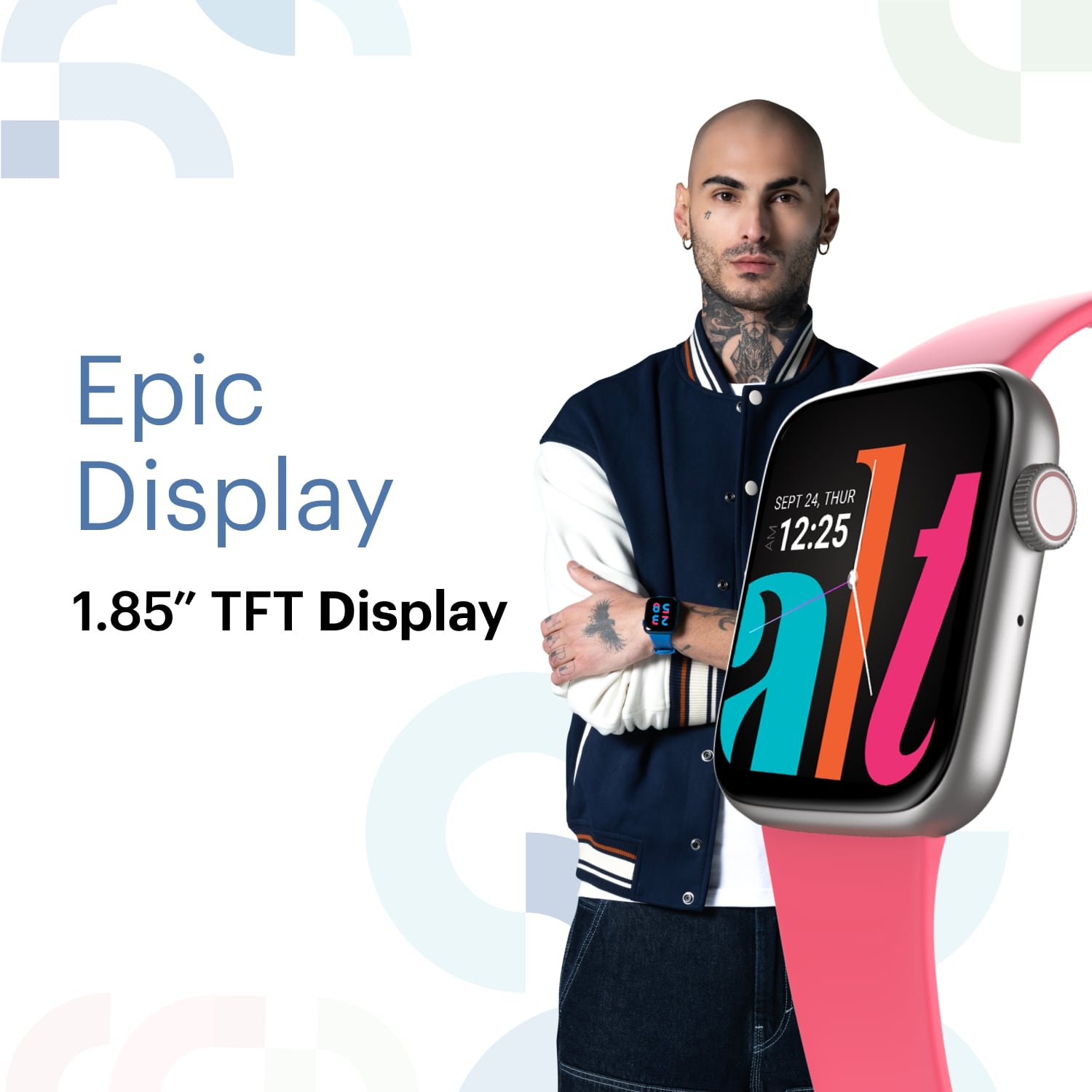 Alt Lit Smartwatch with Bluetooth Calling, 1.85 Inch TFT Screen, IPX5 Water Resistance, Heart Rate, SPO2, Upto 7 days battery, Fire Orange