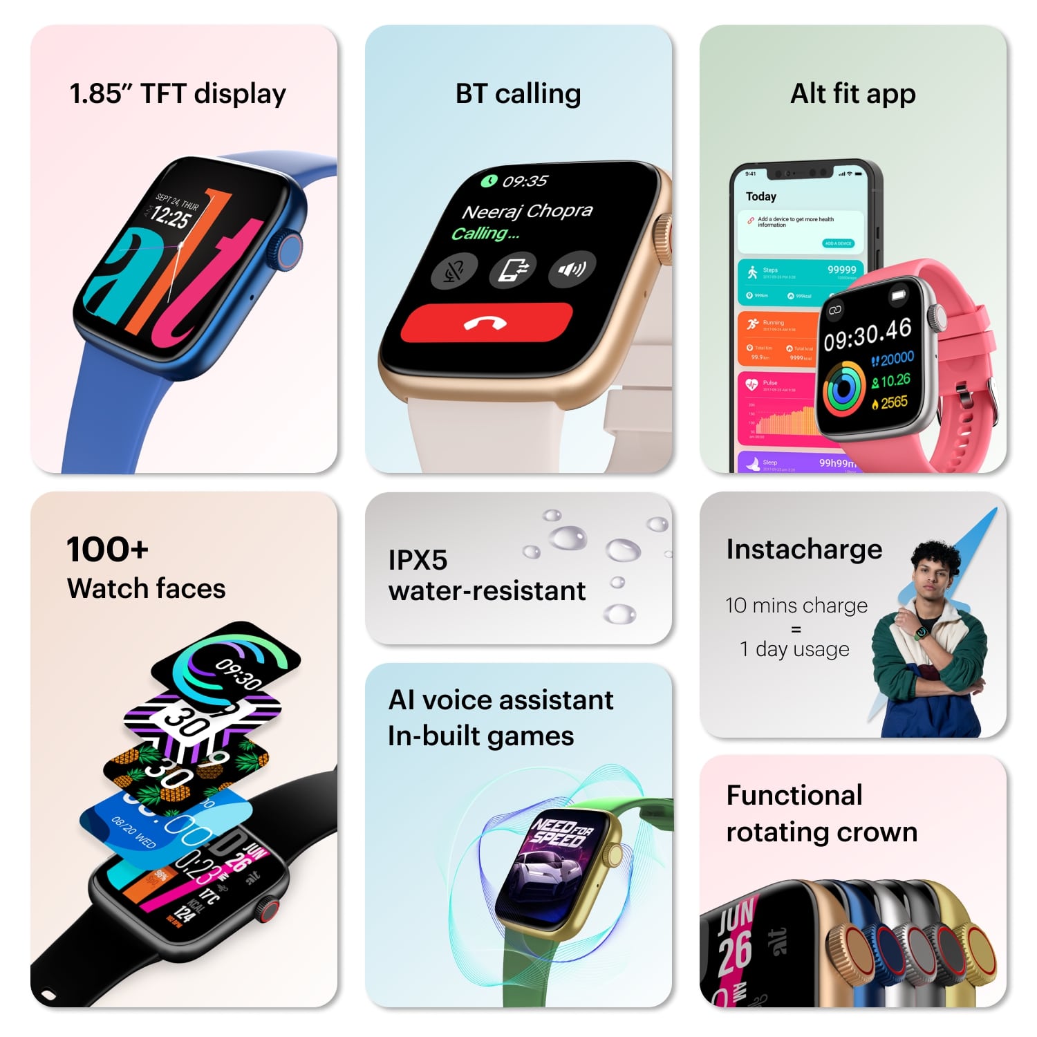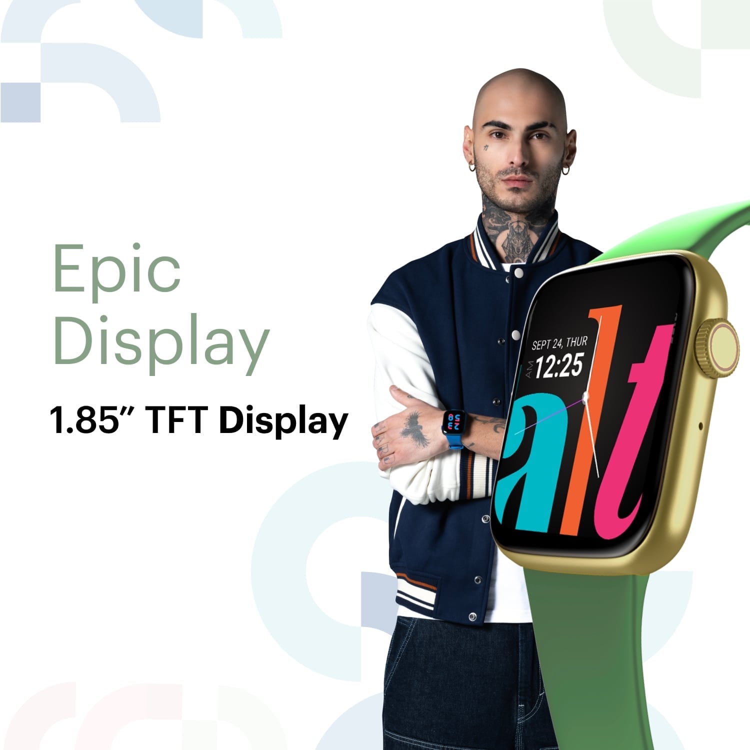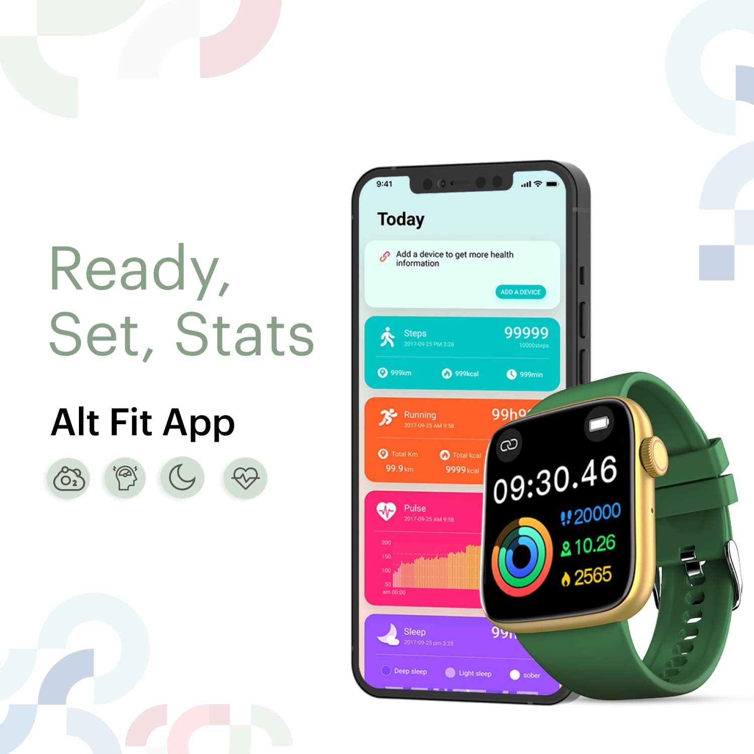 Device Protection Plan AddedAlt Lit Smartwatch with Bluetooth Calling, 1.85 Inch TFT Screen, IPX5 Water Resistance, Heart Rate, SPO2, Upto 7 days battery, Moss Green