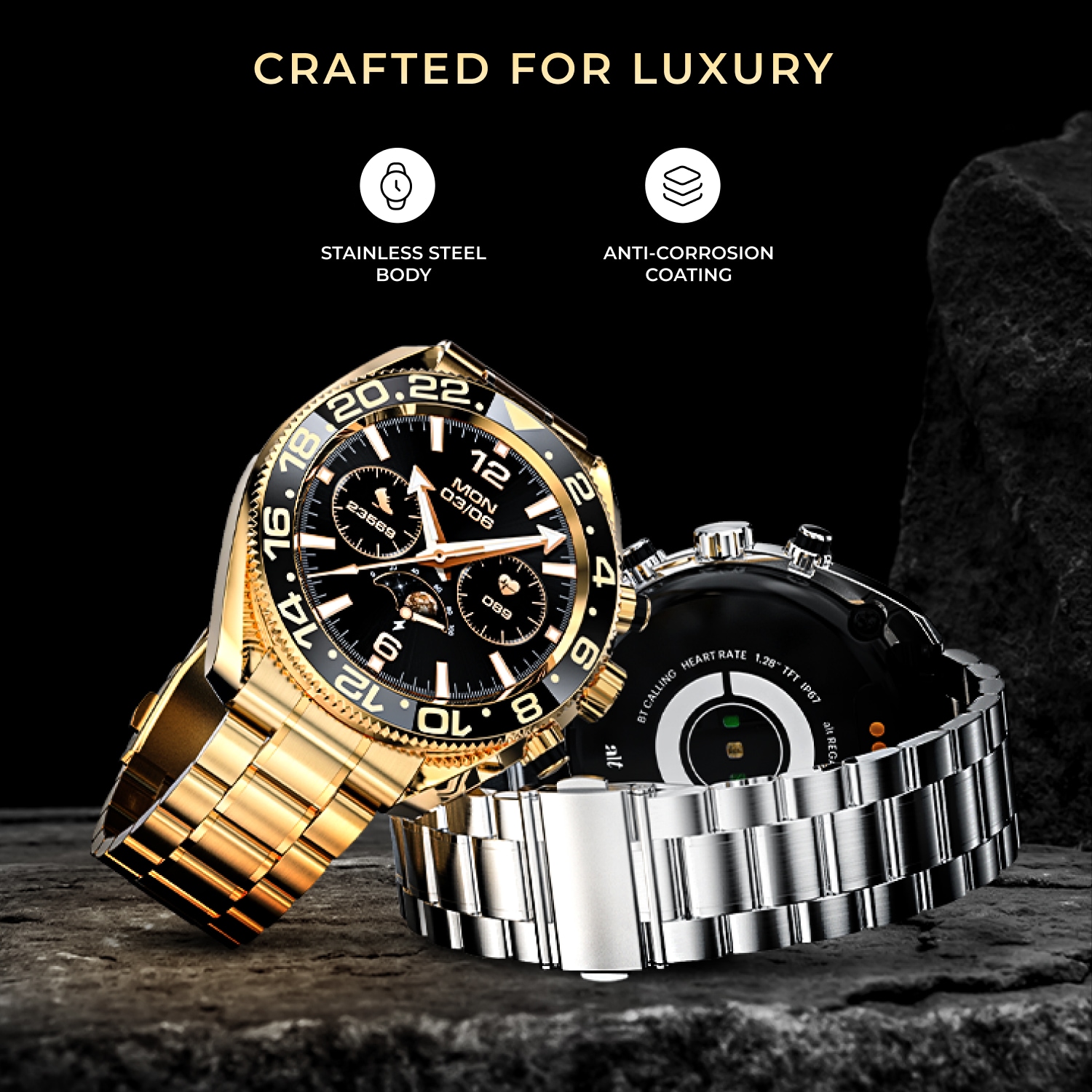 Device Protection Plan AddedAlt Regal Met Smartwatch with Bluetooth Calling, 1.28 Inch TFT Screen,Luxury Metallic Strap IP67 Water Resistance, Heart Rate, SPO2, Upto 7 days battery,In Built Game,Rose Silver