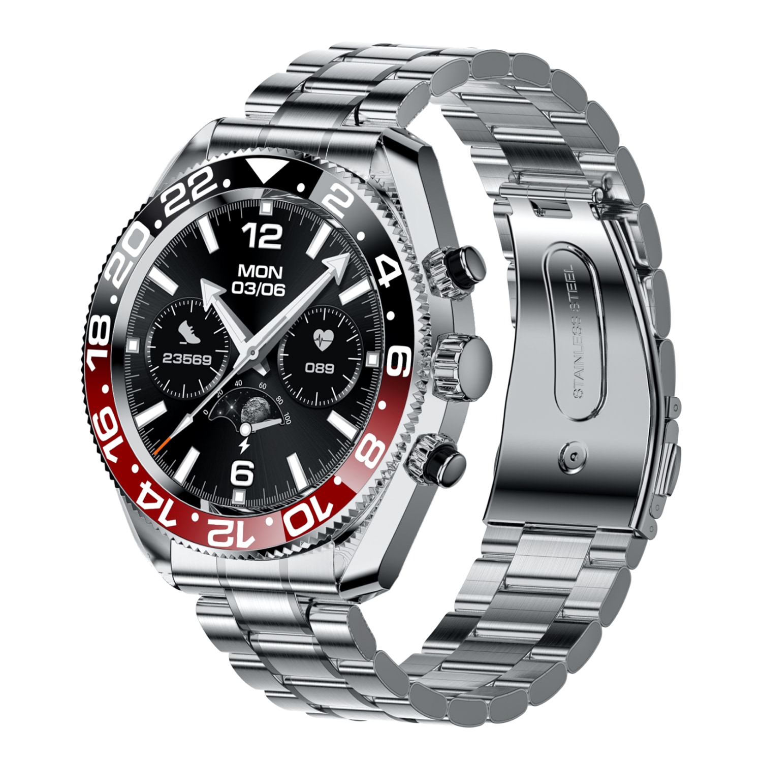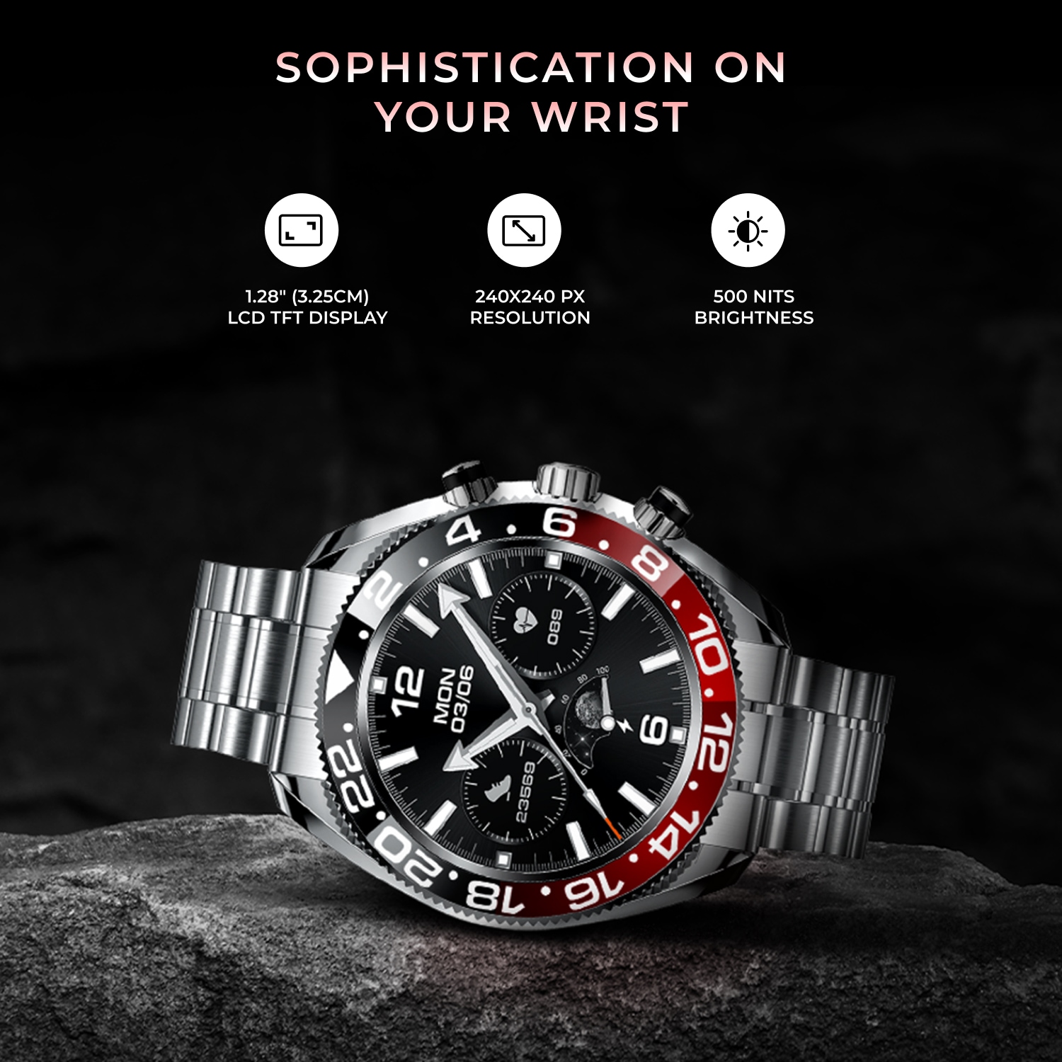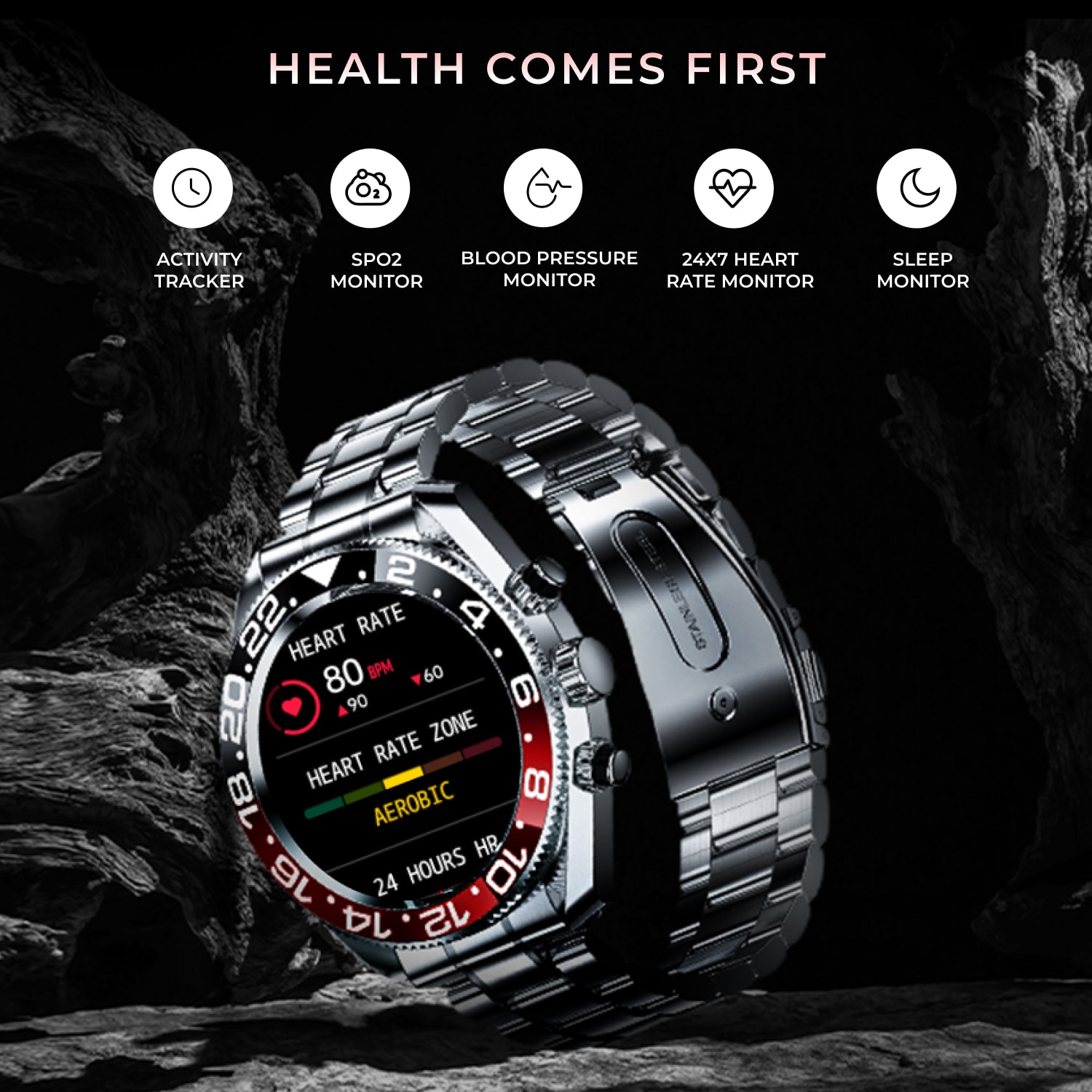 Device Protection Plan AddedAlt Regal Met Smartwatch with Bluetooth Calling, 1.28 Inch TFT Screen,Luxury Metallic Strap IP67 Water Resistance, Heart Rate, SPO2, Upto 7 days battery,In Built Game,Red Silver