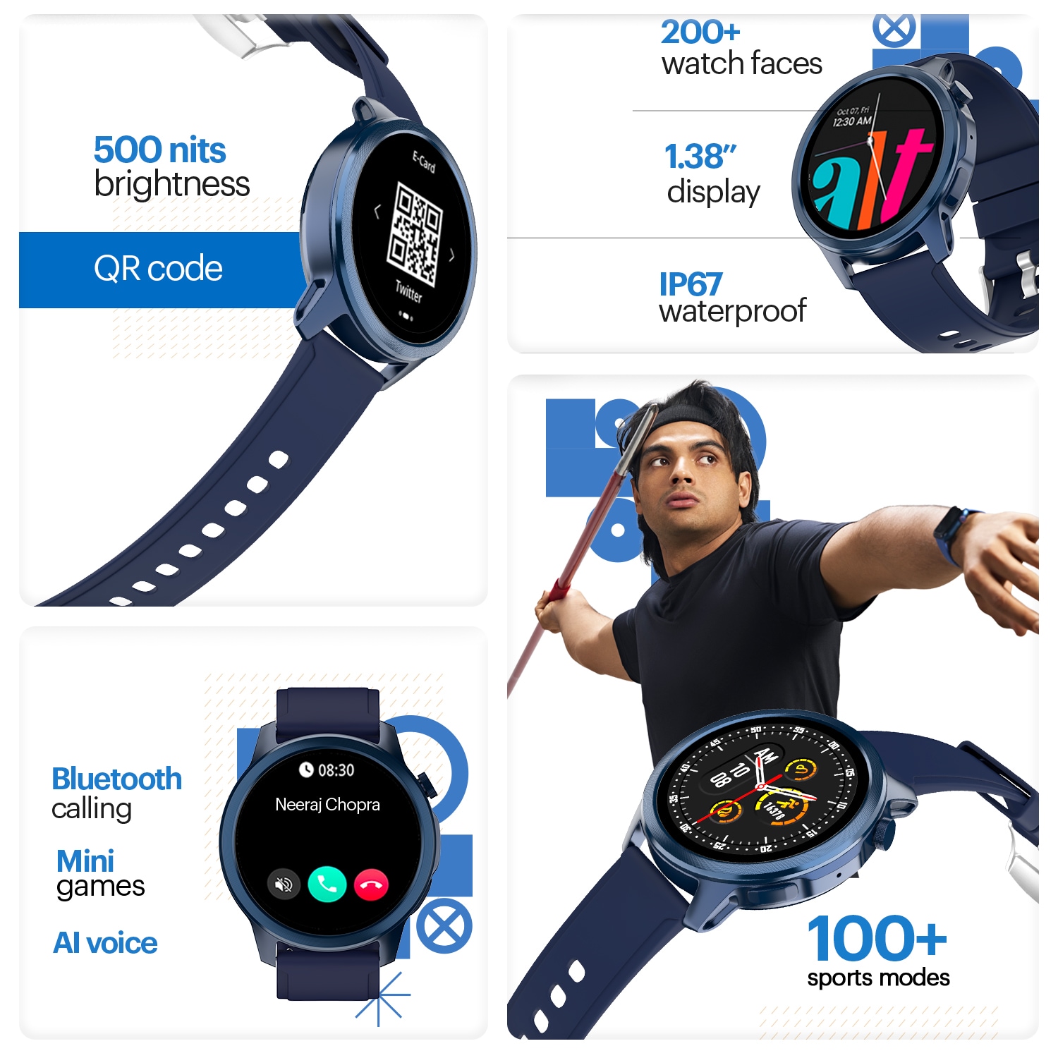 Alt Vibe Smartwatch with Bluetooth Calling, 1.38 Inch TFT Screen, IP67 Water Resistance, 100+ sports mode, Upto 7 days battery, Berry Blue