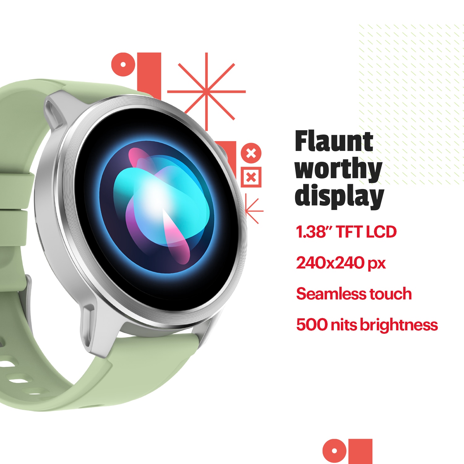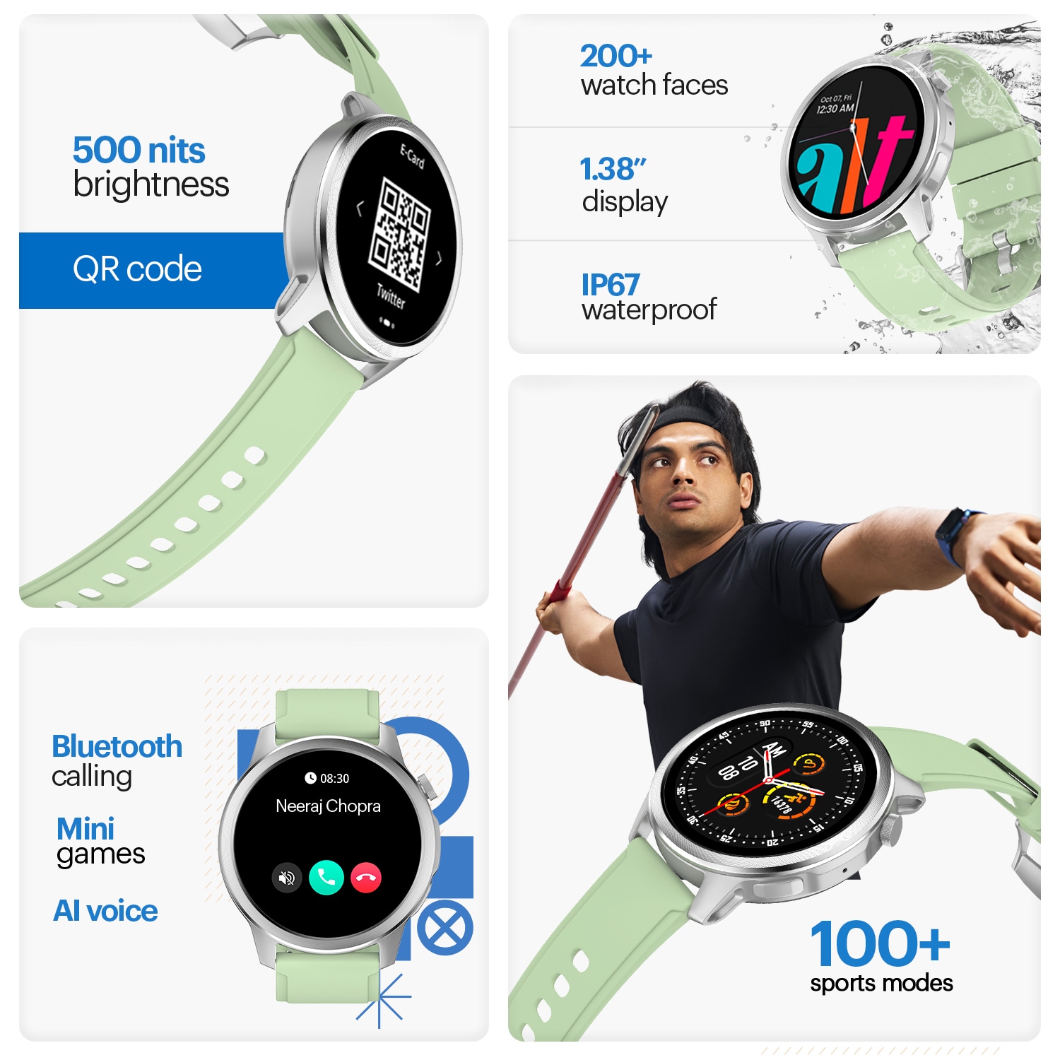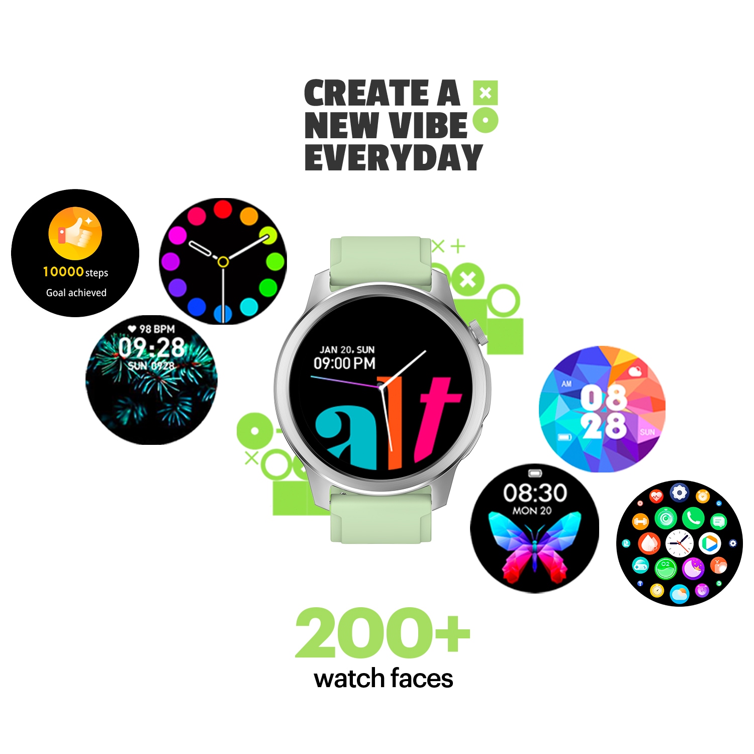 Device Protection Plan AddedAlt Vibe Smartwatch with Bluetooth Calling, 1.38 Inch TFT Screen, IP67 Water Resistance, 100+ sports mode, Upto 7 days battery, Mint Green