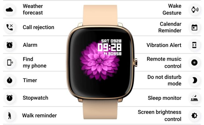 | Key Features | 24 X 7 heart rate monitoring IP68 waterproof Full touch display Customisable & cloud-based watch faces 8 sports mode |