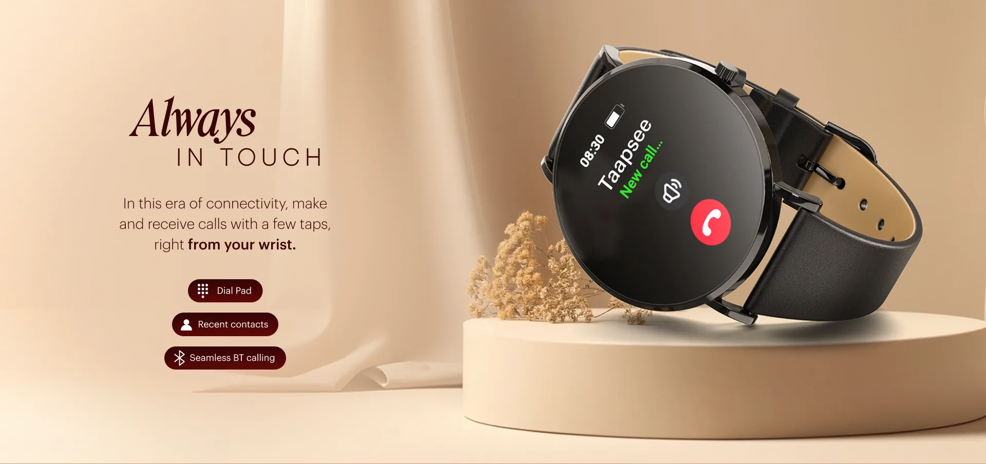 | Key Features | 3.63 cm (1.43 inch) AMOLED Display: Enjoy vivid colors and deep contrasts on the crystal-clear AMOLED screen, offering an immersive viewing experience BT Calling, IP68 Water Resistance, Up to 5-Days Battery Health & Fitness Tracking: Monitor your heart rate, sleep patterns, steps, and more, keeping you on track with your wellness goals Sleek & Sophisticated Design: Crafted for elegance, this smartwatch complements any look, from casual to formal Luxury Build: Premium materials with a refined finish, designed to provide a luxurious touch to your wrist |