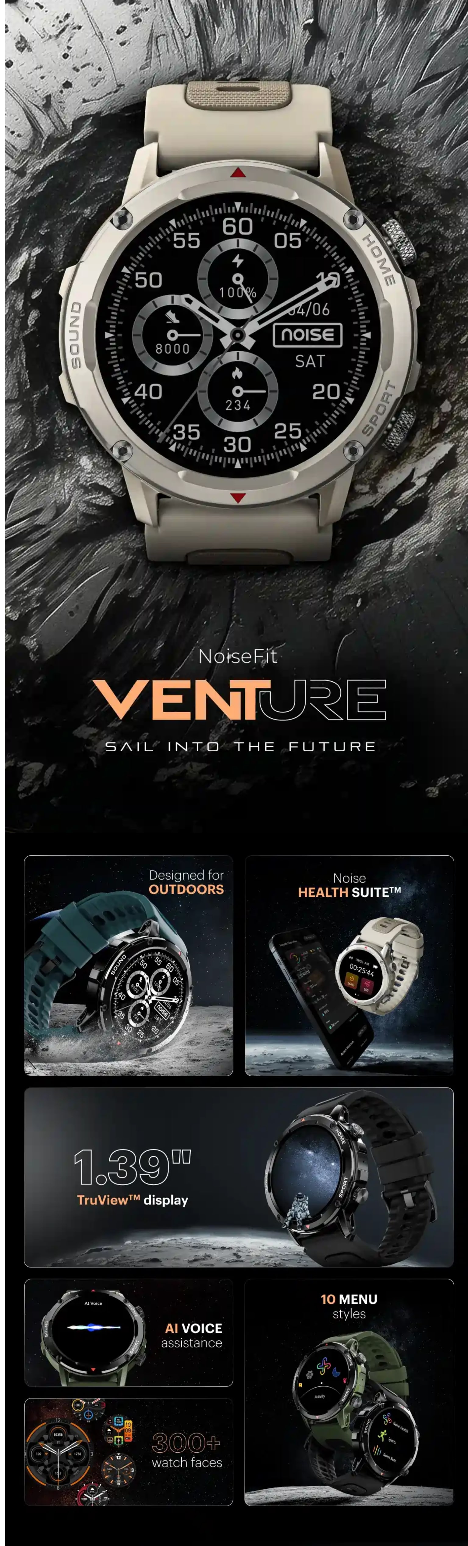 | Key Features | 3.53 cm (1.39 inch) TruView Display Bluetooth Calling Battery Runtime: Up to 7 days Noise Health Suite AI Voice Assistant 10 Menu Styles 300+ Watch Faces 100+ Sports Modes Password Protection Fitness & Outdoor |