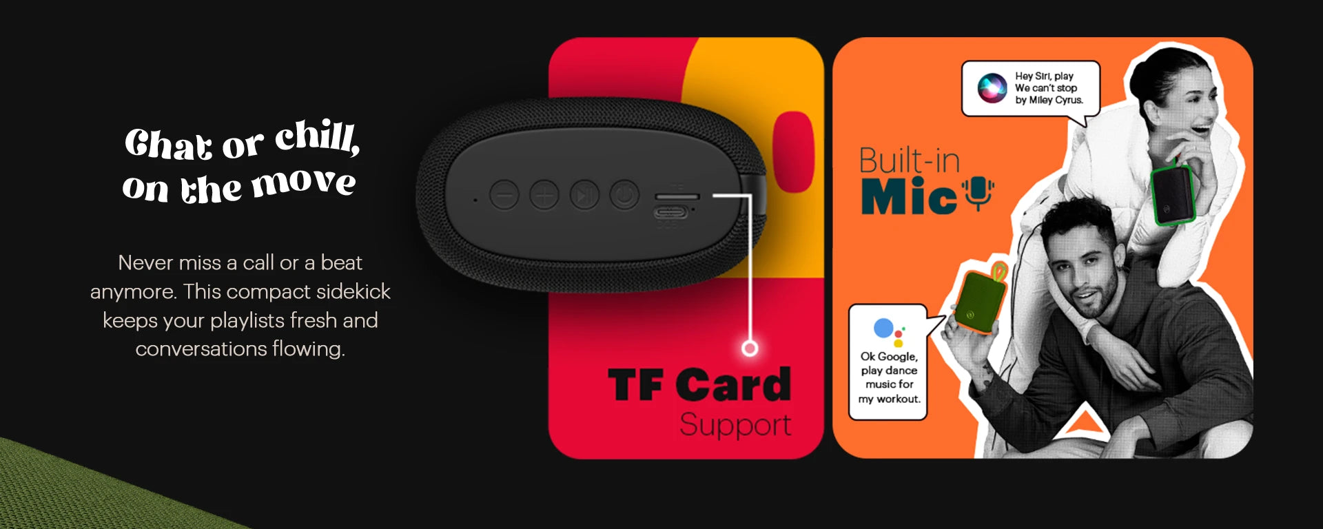 | Key Features | Bluetooth: v5.3 BT Supported Profile: A2DP, AVCTP, HFP, HSP, SPP, HID, AVDTP Voice Assistant: Siri, Google Assistant Dual Device Pairing: Yes, it has TWS support Water Resistance Rating: IPX7 Power Output (RMS) - 5 Watts Low Latency: Up to 40ms Hands-Free Calling: Yes Playtime: Up to 15 hours Charging Indicator: Yes Auto Pairing: Yes Compatibility: Android & iOS Tru Bass |