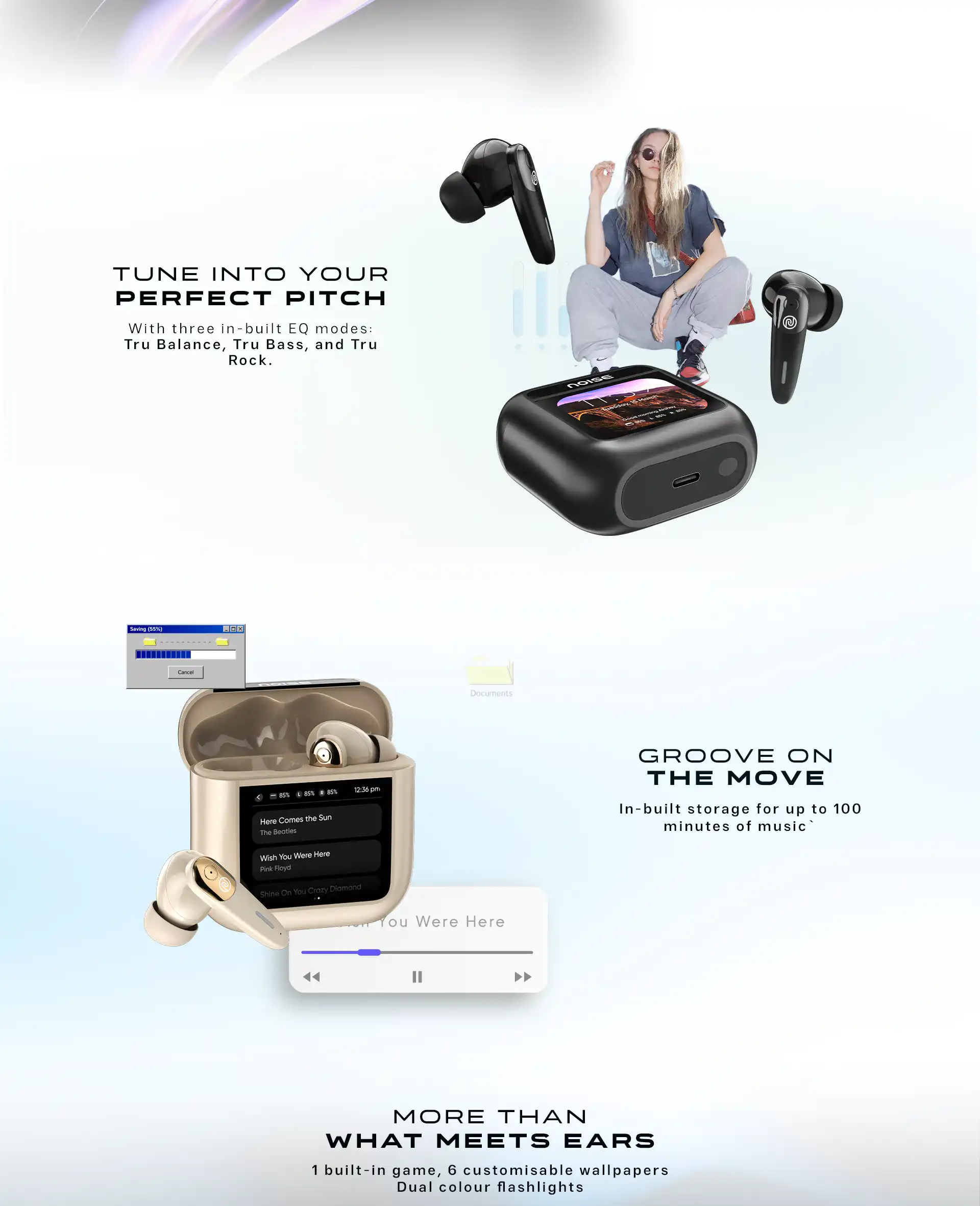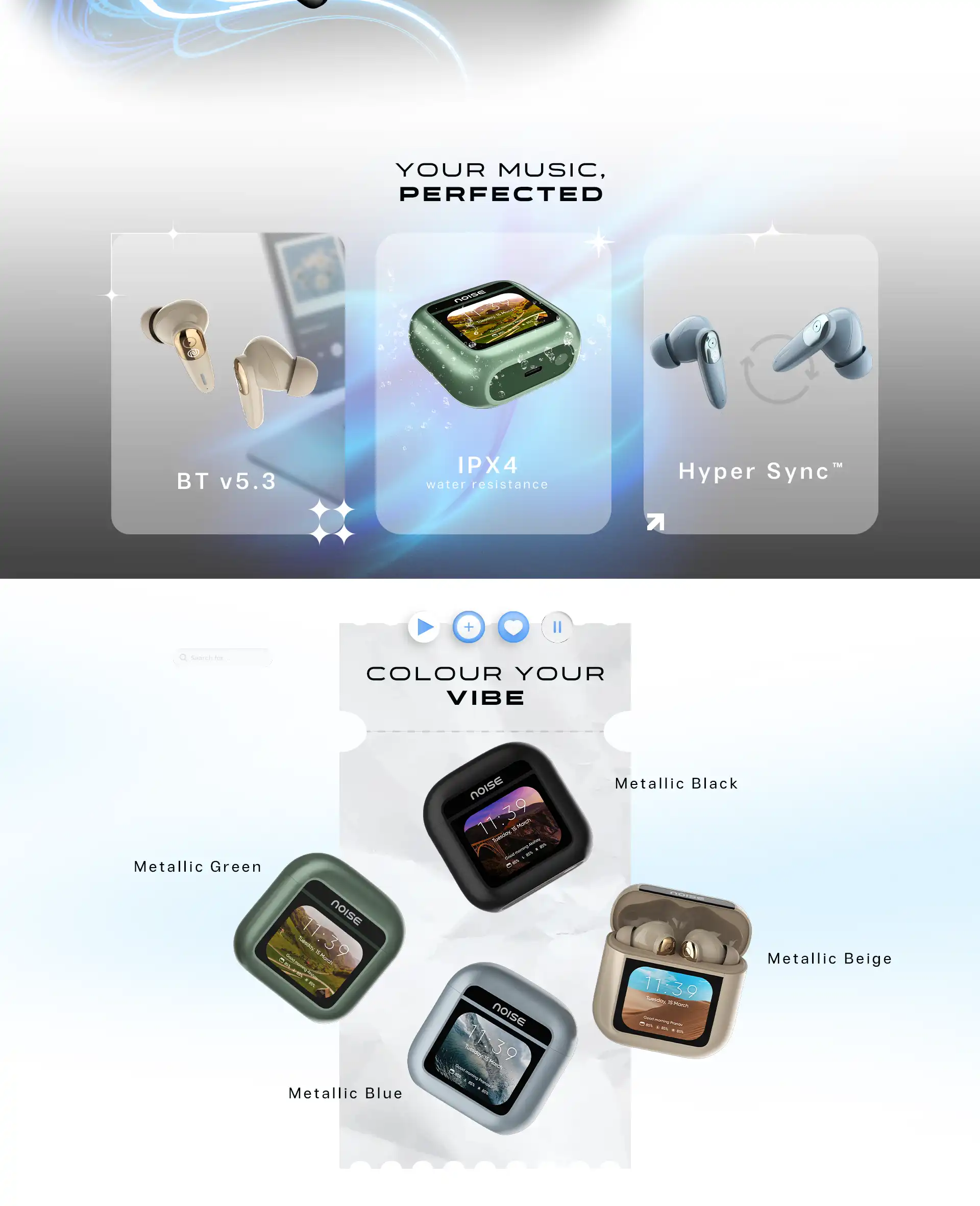 - 1st Ever Buds with an In-Case Display: Tune into a new perspective with our first-ever Noise View Buds featuring a 4.44 cm (1.75 inch) HD display right on the case and see your tunes come alive like never before