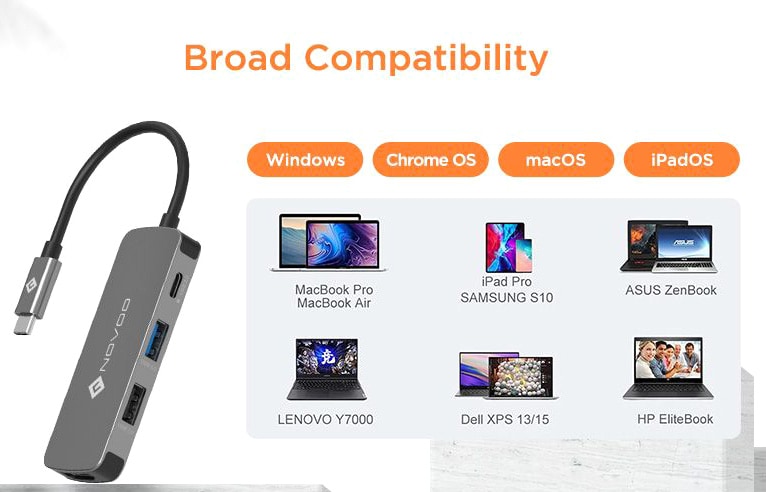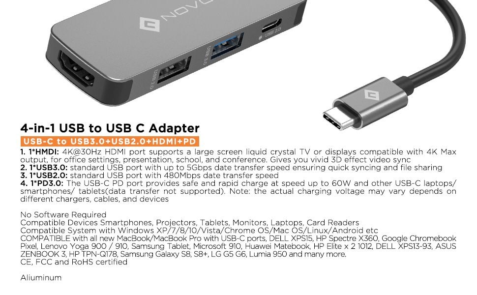 | Key Features | Supports Almost all Type-C Device Fast Charging Your PC Up to PD Ultra HD 4K at 30Hz HDMI Display USB 2.0 Ports with 480mbps Compatible with USB-C Ports |