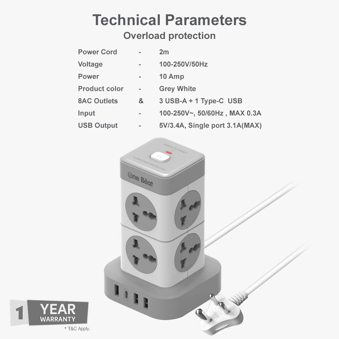 One Beat Mini Tower Extension Boards with USB Port with Universal Sockets