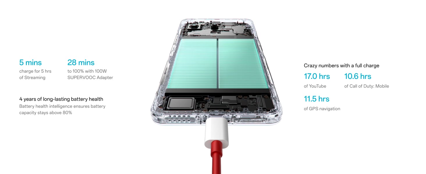 - 5500 mAh Battery, 100 Watts SUPERVOOC charging