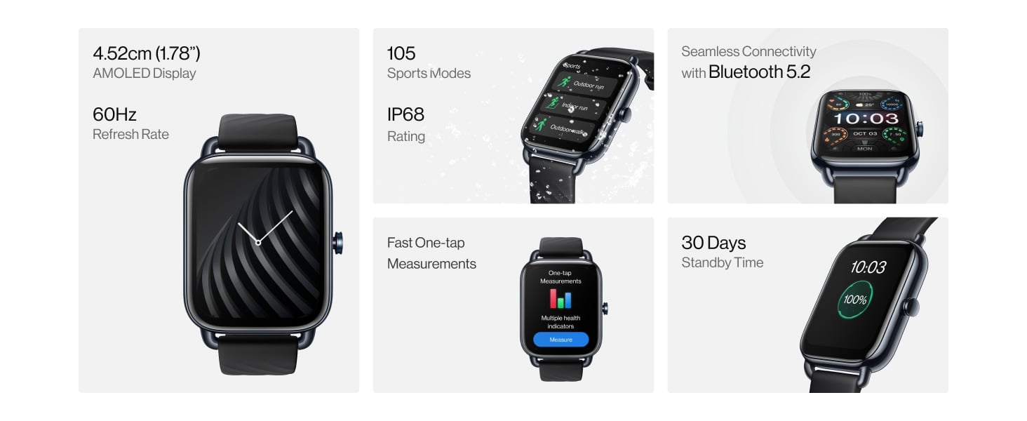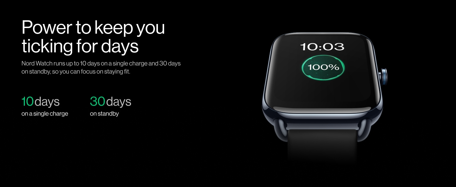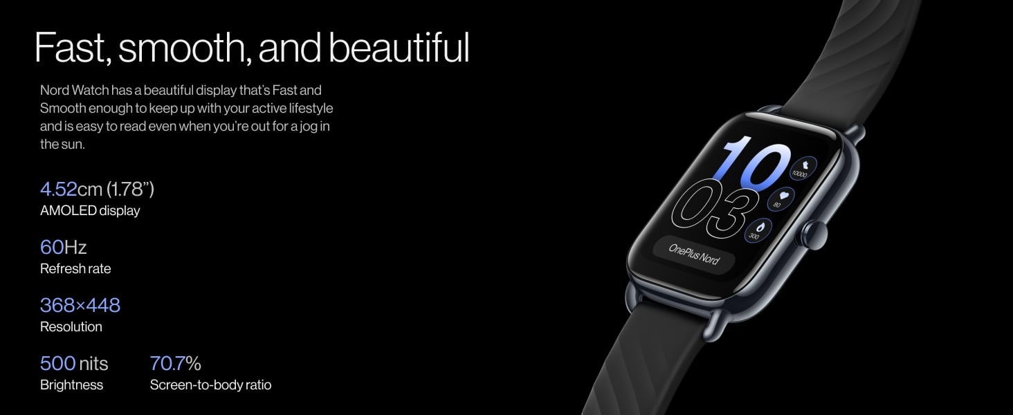 Device Protection Plan AddedOne Plus Nord Smartwatch, 4.52 cm (1.78 inch) AMOLED Display, 105 Sports Modes, 60 Hz Refresh Rate, Resolution 368x448, Brightness 500 nits, Resistant to SKIN Irritation, 10 days on Single charge, 30 days standby -Magico Black