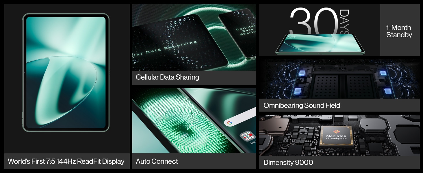 | Key Features | 2.5D Curved Glass MediaTek Dimensity 9000 29.49cm (11.61 inch) screen Omnibearing Sound Field technology Powered by a massive 9510 mAh battery 12 GB RAM |