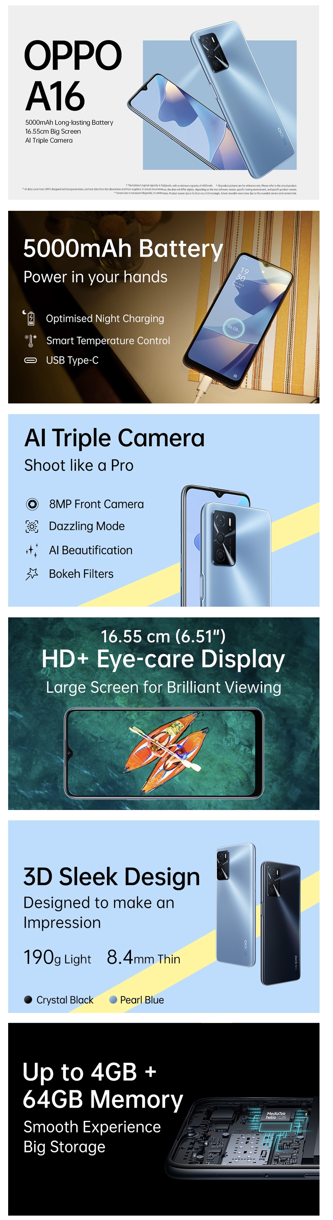 * This Oppo A16 Smartphone image is for illustration purpose only. Actual image may vary.