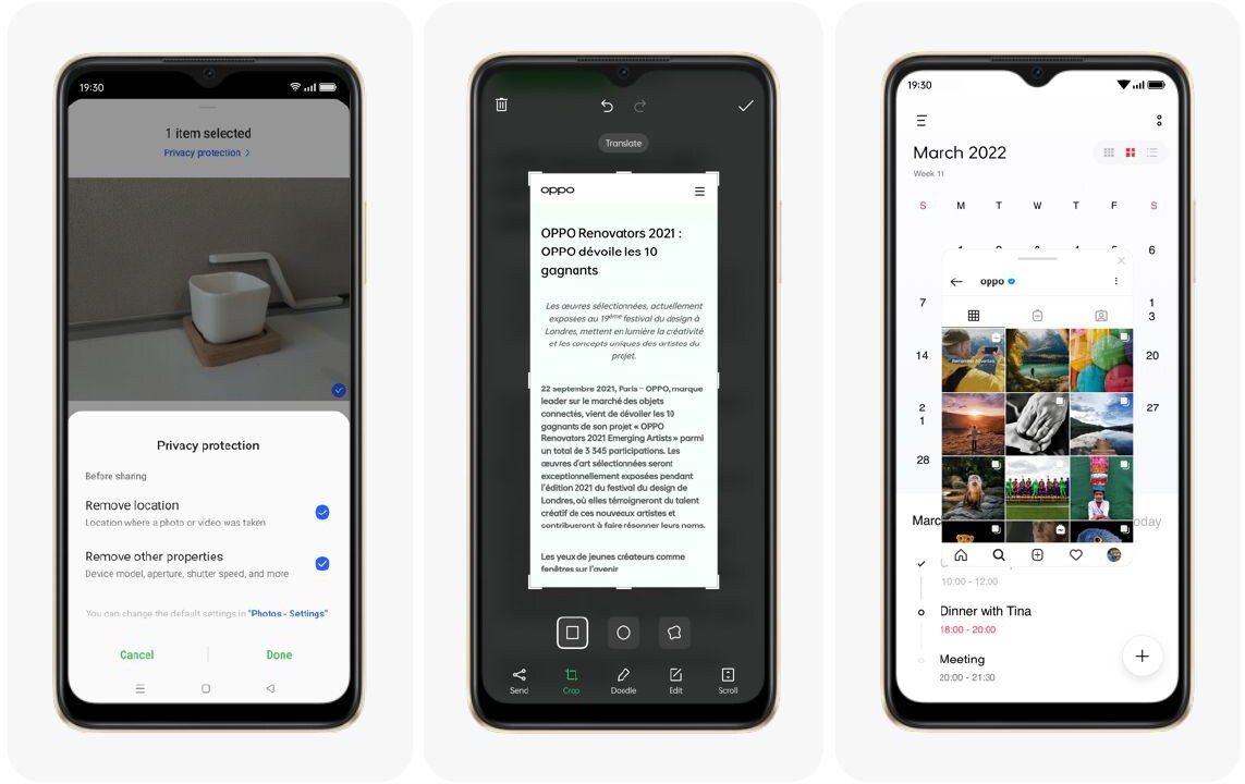 | Features | Up to 4 GB RAM Expansion Colour-Rich Eye-Care Display Side Fingerprint Unlock Ultra-Volume Mode AI Portrait Retouching Rigorous Quality Tests IPX4 Water Resistance Five-Grade Access Control Three-Finger Translate with Google Lens FlexDrop Feature Color OS 12.1 Based on Android |
