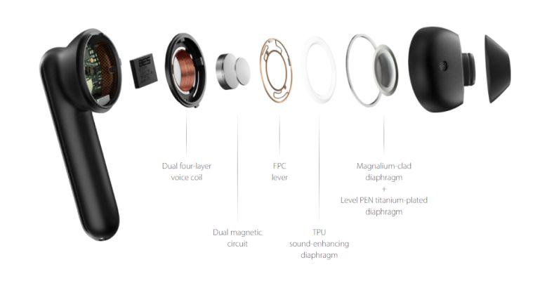Speakers are the heart and soul of your headphones. OPPO Enco Free pack in cutting-edge ultra-dynamic speakers to deliver incredible audio performance, combining the FPC positioning system used in high-end stereo equipment with a sophisticated dual magnetic circuit and composite diaphragm made of titanium dome and magnalium cladding. Powered by six patented technologies that enhance the detail, bass, and dynamic range of your music, you get a studio-quality listening experience you can enjoy anywhere.