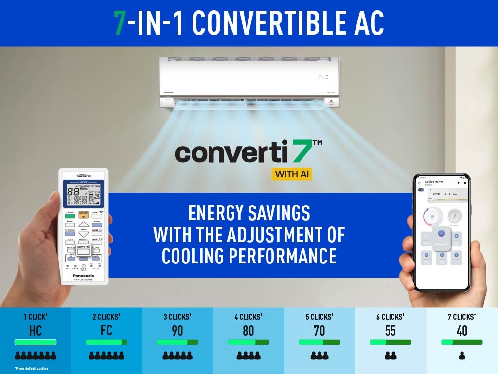 While Panasonic Inverter Air Conditioners are truly auto convertible, there is a provision to manually adjust the AC for up to 7 stages of cooling performance ranging from 40% to more than 100%, this can be done via Converti7 button on the remote or on the MirAie app