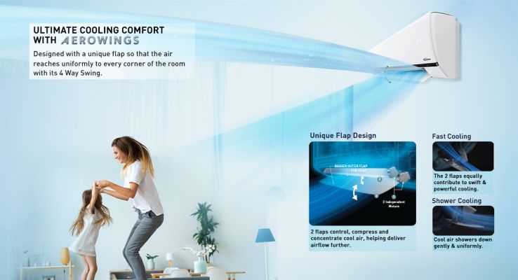 Designed with a unique flap so that the air reaches uniformly to every corner of the room with its 4 way swing.