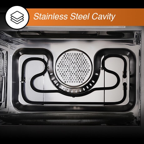 A Robsut, rust-free Stainless Steel cavity ensures faster heating and easy cleaning