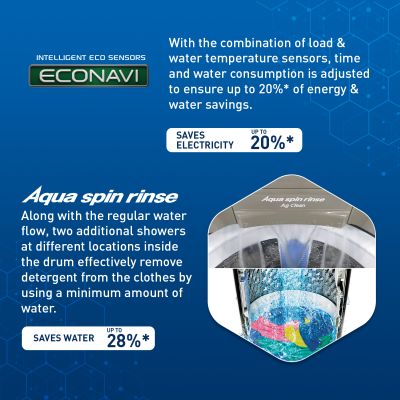 | Key Features | Superb Washing Performance With Active Foam System 5 Star Rating From BEE-Energy Saving Aqua Spin Rinse Auto Restart Sazanami Drum Stainless Steel Sheet |
