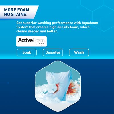 Superb wash with fine foam. Better usability with detergent & softener drawer. The ActiveFoam System creates fine, high density foam before the washing cycle starts. Fine foam lifts, separates and removes dirt from deep within fibers.