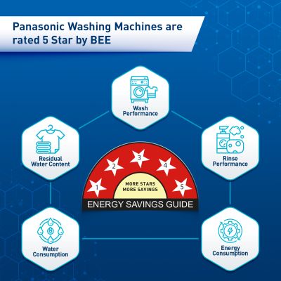 5 Star grade for energy label from BEE. Water Reuse Course- Final rinsing water for next washing cycle. Enables 23% water saving.