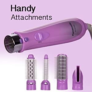 This styler comes with multiple attachments aimed at increasing the ability to do various hair styles. The styler has 4 nozzles namely blow brush, slim roller brush, siliconized brush, and blower nozzle.