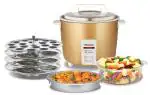 - Comes with 2 dish separator pan, steaming basket and idli stand