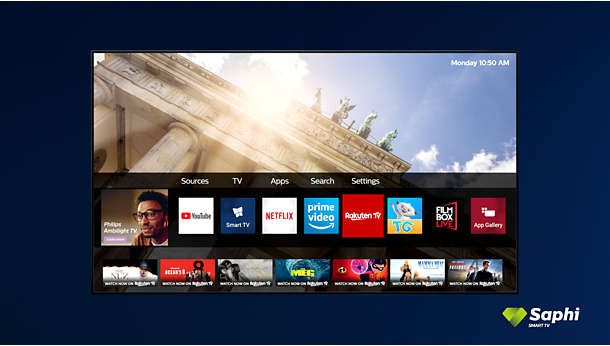 SAPHI is a fast, intuitive operating system that makes your Philips Smart TV a real pleasure to use. Enjoy great picture quality and one-button access to a clear icon-based menu. Operate your TV with ease, and quickly navigate to popular Philips Smart TV apps including YouTube, Netflix, and more.