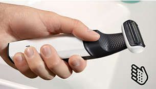 Your wet and dry body groomer is 100% water resistant, so you can use it in or out of the shower. For best results, use on dry hair before showering.
