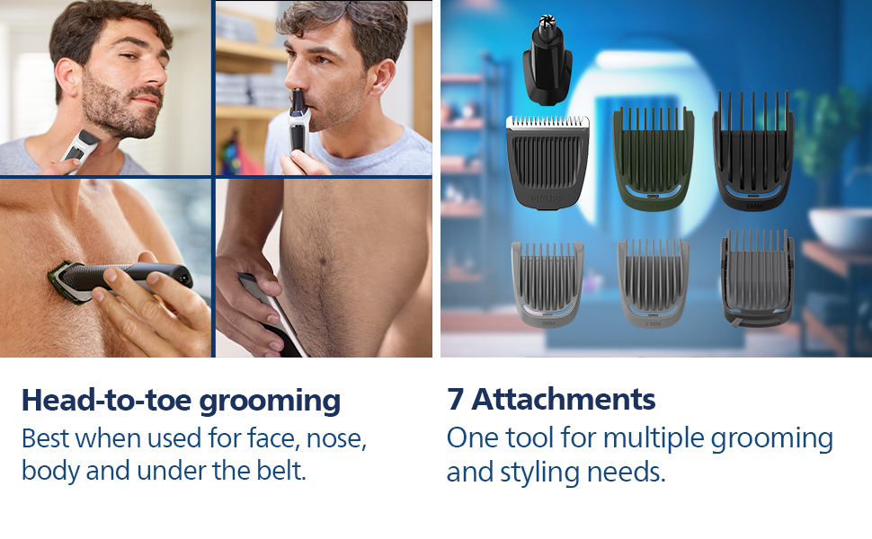| Key Features | Self-sharpening Skin-friendly blades for a perfect trim Trim and style your face and hair with 7 tools Trimmer edges beard and hair to complete your look |
