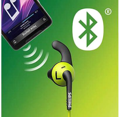 Device Protection Plan AddedPhilips SHQ6500CL Actionfit RunFree Wireless Sports Earphone, Secure Fit, Tough Waterproof Design & Powerful Bass, Green/Black