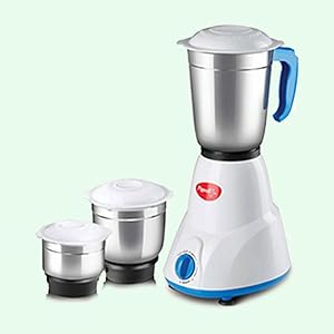 Powerful motorThe Pigeon gusto mixer grinder has a powerful motor which makes grinding and crushing spices, nuts, and vegetables and fruits an easy job. The powerful motor does not sputter and delivers efficient performance. | High quality sturdy stainless steel bladesThe product has efficient sturdy stainless steel blades which effortlessly grinds edibles to a smooth texture. The blades are rust-proof and are easy to clean. | Attached handle for better gripThe Pigeon mixer grinder comes with an attached handle for better handling of the product. There is no risk of the jar slipping from your hand and causing wastage. |