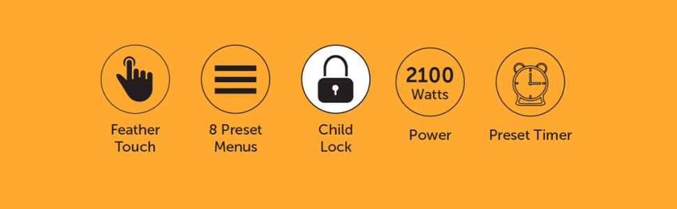 - Features seven Indian preset menus, soft touch push buttons and automatic shut off